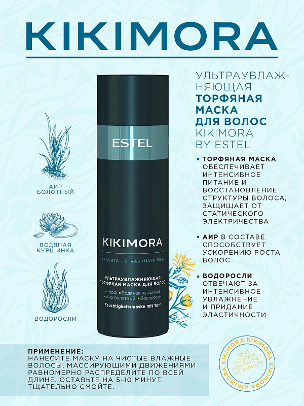 Набор Kikimora: шампунь, 250 мл + маска, 200 мл + разглаживающий филлер, 100 мл