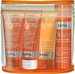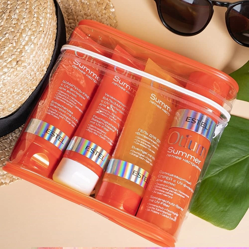 Набор в косметичке "Лето с собой": шампунь, 100 мл + бальзам-маска, 100 мл + спрей, 100 мл + гель для душа, 100 мл