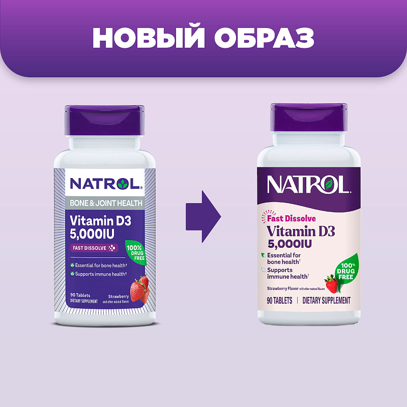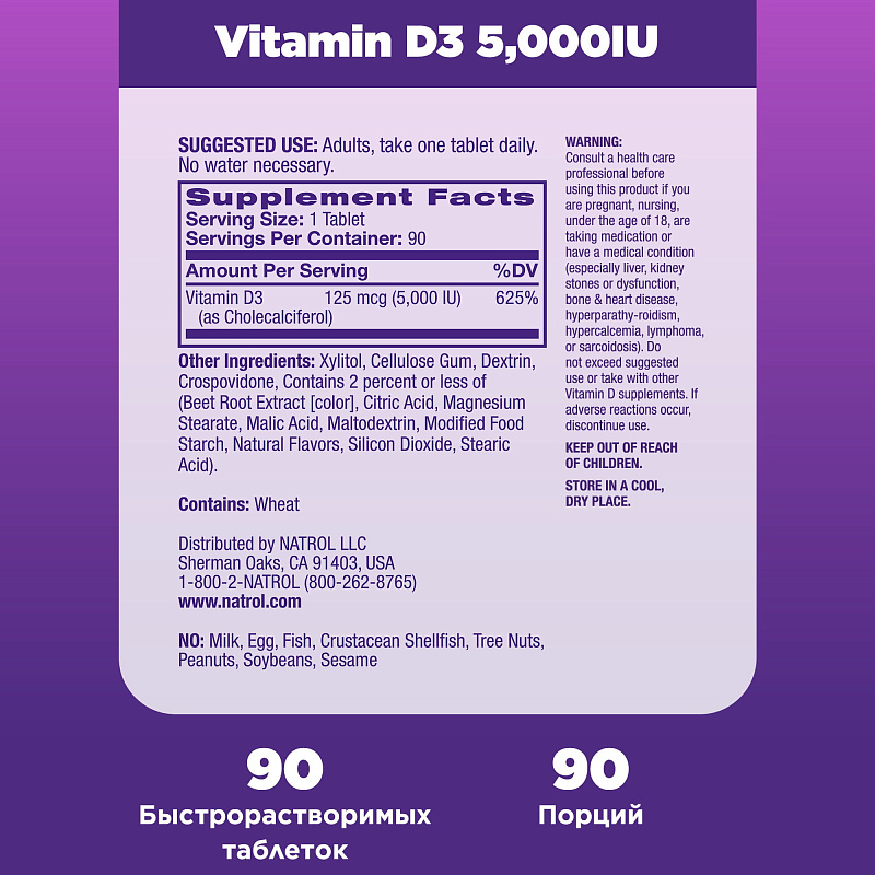 Витамин D3 быстрорастворимый со вкусом клубники 5000, 90 таблеток