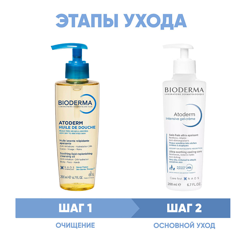 Программа Atoderm очищение и основной уход: масло для душа 200 мл + гель-крем Intensive 200 мл