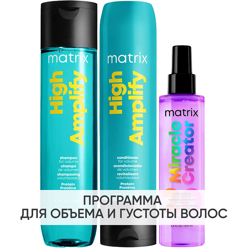 ПРОГРАММА КОМПЛЕКСНОГО УХОДА Matrix High Amplify для увеличения объема и густоты волос. Комплексный уход представляет собой дополняющие друг друга средства, совместное использование которых будет максимально эффективным. Первым шагом программы является базовый уход (очищение + питание), вторым – дополнительный уход (средства, усиливающие эффект базовой программы и применяемые постоянно или периодически).