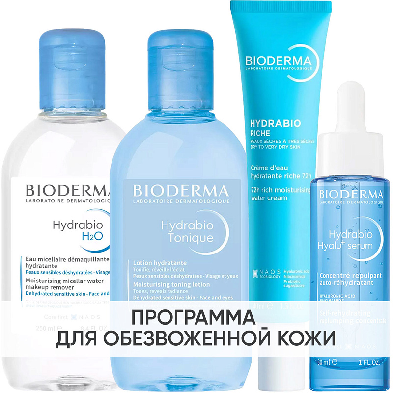 ПРОГРАММА КОМПЛЕКСНОГО УХОДА Bioderma Hydrabio для обезвоженной кожи. Комплексный уход представляет собой дополняющие друг друга средства, совместное использование которых будет максимально эффективным. Первым шагом программы является очищение, вторым - основной уход. В третий шаг входят дополнительные средства, усиливающие эффект основной программы и применяемые постоянно или периодически на различных этапах ухода.