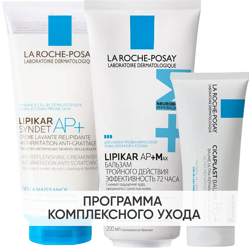 ПРОГРАММА КОМПЛЕКСНОГО УХОДА La Roche-Posay Lipikar для очень сухой и склонной к атопии кожи. Комплексный уход представляет собой дополняющие друг друга средства, совместное использование которых будет максимально эффективным. Первым шагом такой программы всегда является очищение, вторым - основной уход. Третьим шагом может стать дополнительный уход.