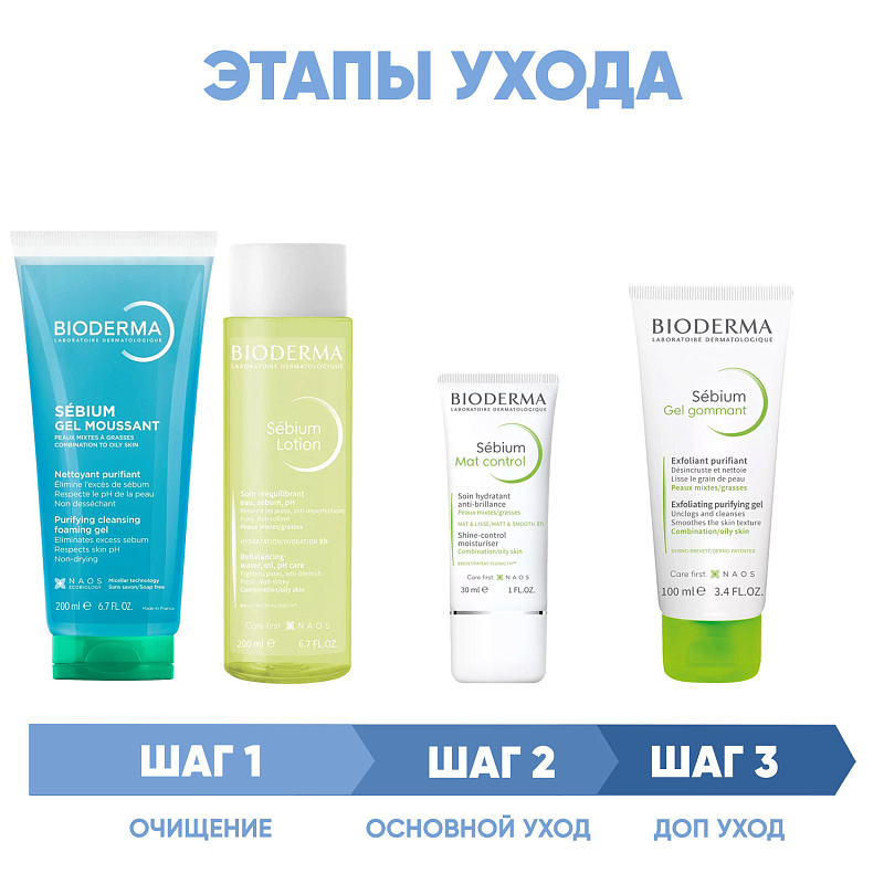 ПРОГРАММА КОМПЛЕКСНОГО УХОДА для жирной и комбинированной кожи лица с тенденцией к акне. Комплексный уход представляет собой дополняющие друг друга средства, совместное использование которых будет максимально эффективным. Первым шагом такой программы всегда является очищение, вторым - основной уход.