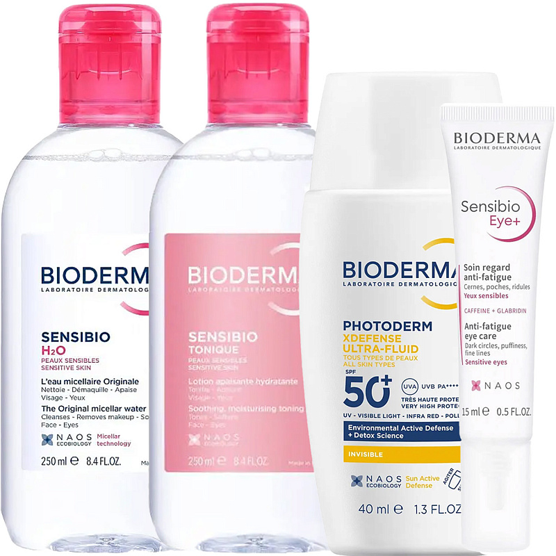 ПРОГРАММА КОМПЛЕКСНОГО УХОДА Bioderma Sensibio для чувствительной кожи, склонной к покраснениям, раздражениям, к появлению аллергии, купероза, розацеа и дерматита. Комплексный уход представляет собой дополняющие друг друга средства, совместное использование которых будет максимально эффективным. Первым шагом программы является очищение, вторым - основной уход. В третий шаг входят дополнительные средства, усиливающие эффект основной программы и применяемые постоянно или периодически на различных этапах ухода.
