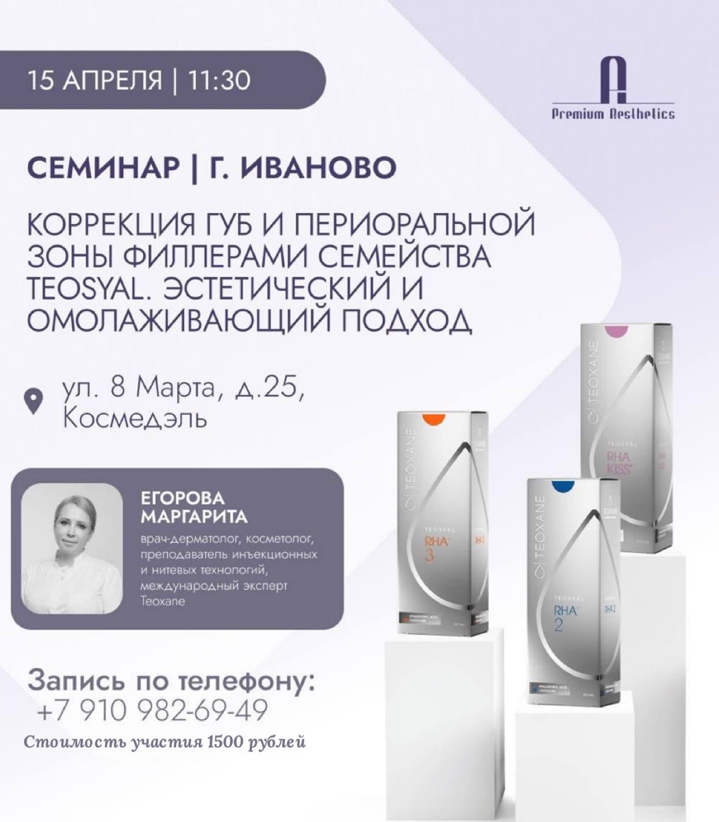 Приглашаем вас на обучающий семинар, посвященный препаратам TEOXANE, который состоится 15 апреля в Иваново.