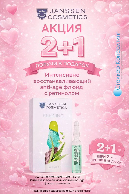 При покупке 2 упаковок ампул J1942 Refining Retinol Fluid 7х2мл Интенсивно восстанавливающий anti-age флюид с ретинолом, третья упаковка в подарок!