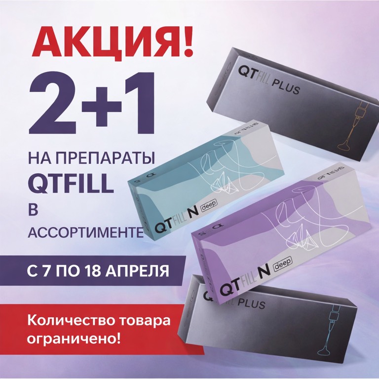 С 7 по 18 апреля при покупке 2-х препаратов QTFILL, третий препарат по наименьшей цене в подарок!