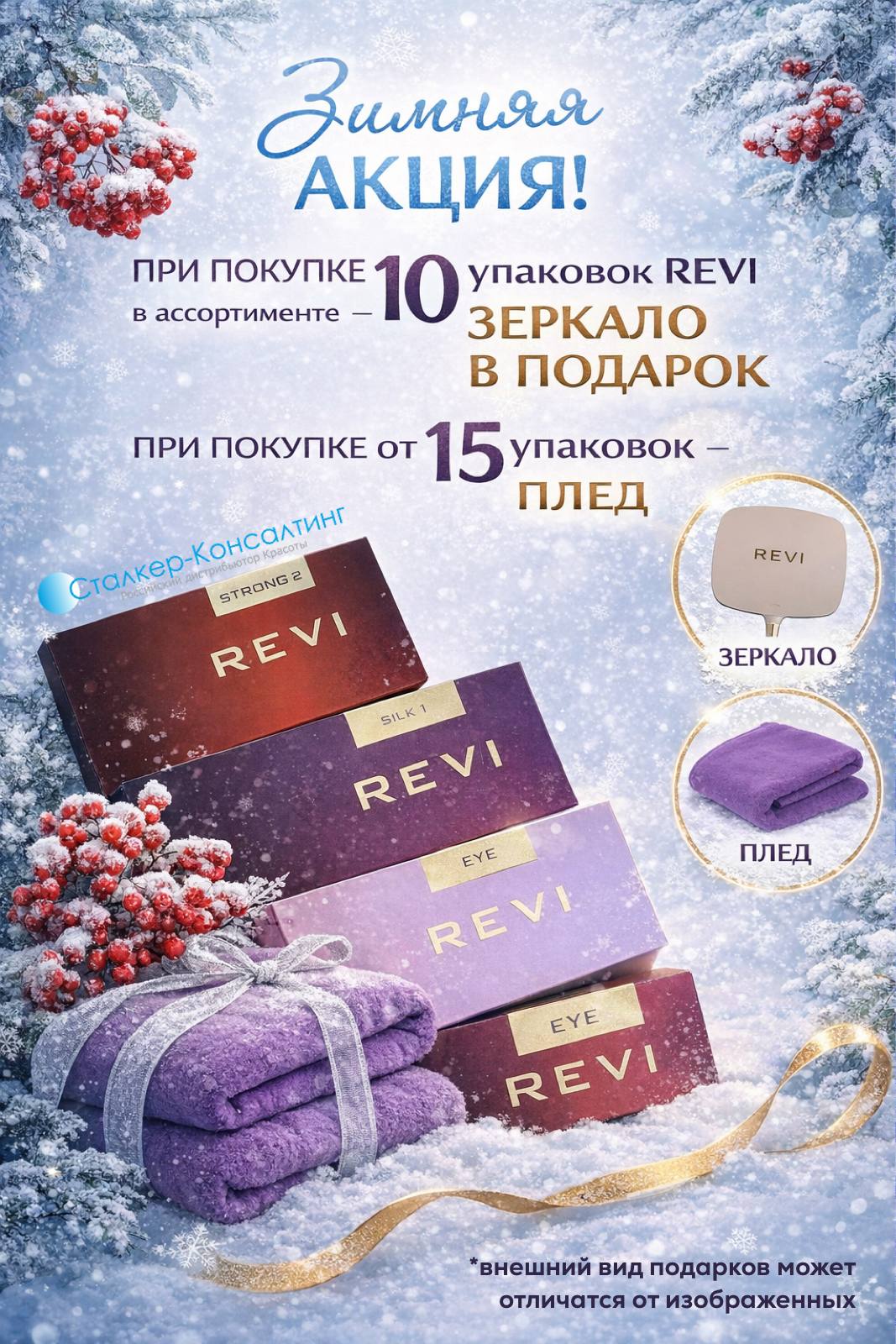 При покупке от 10 упаковок препаратов REVI в ассортименте для вас Зеркало с логотипом в ПОДАРОК!