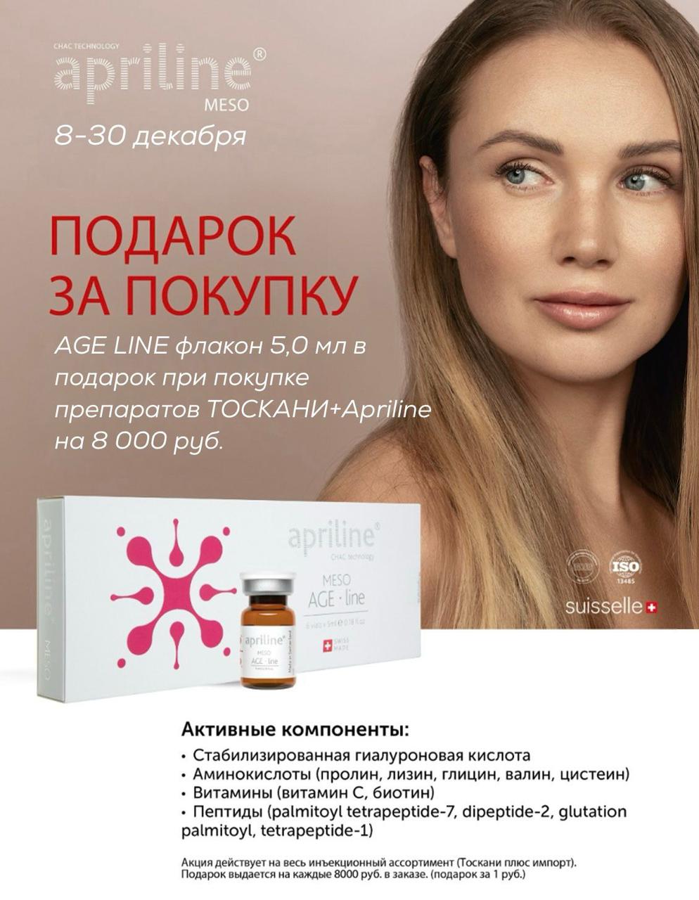 С 8 по 30 декабря получите в подарок флакон Apriline Age Line при покупке от 8000 рублей препаратов ТОСКАНИ и Apriline в ассортименте.