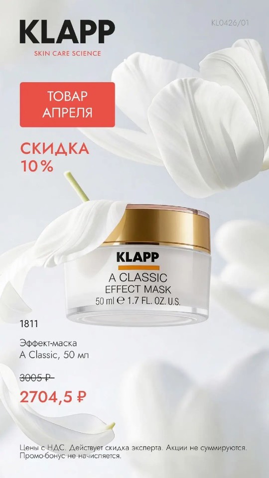 Для вас действует скидка 10% на любимый продукт Эффект-маску A Classic, 50 мл