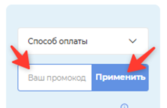 Промокод вводится в корзине, в соответствующее поле перед подтверждением заказа.