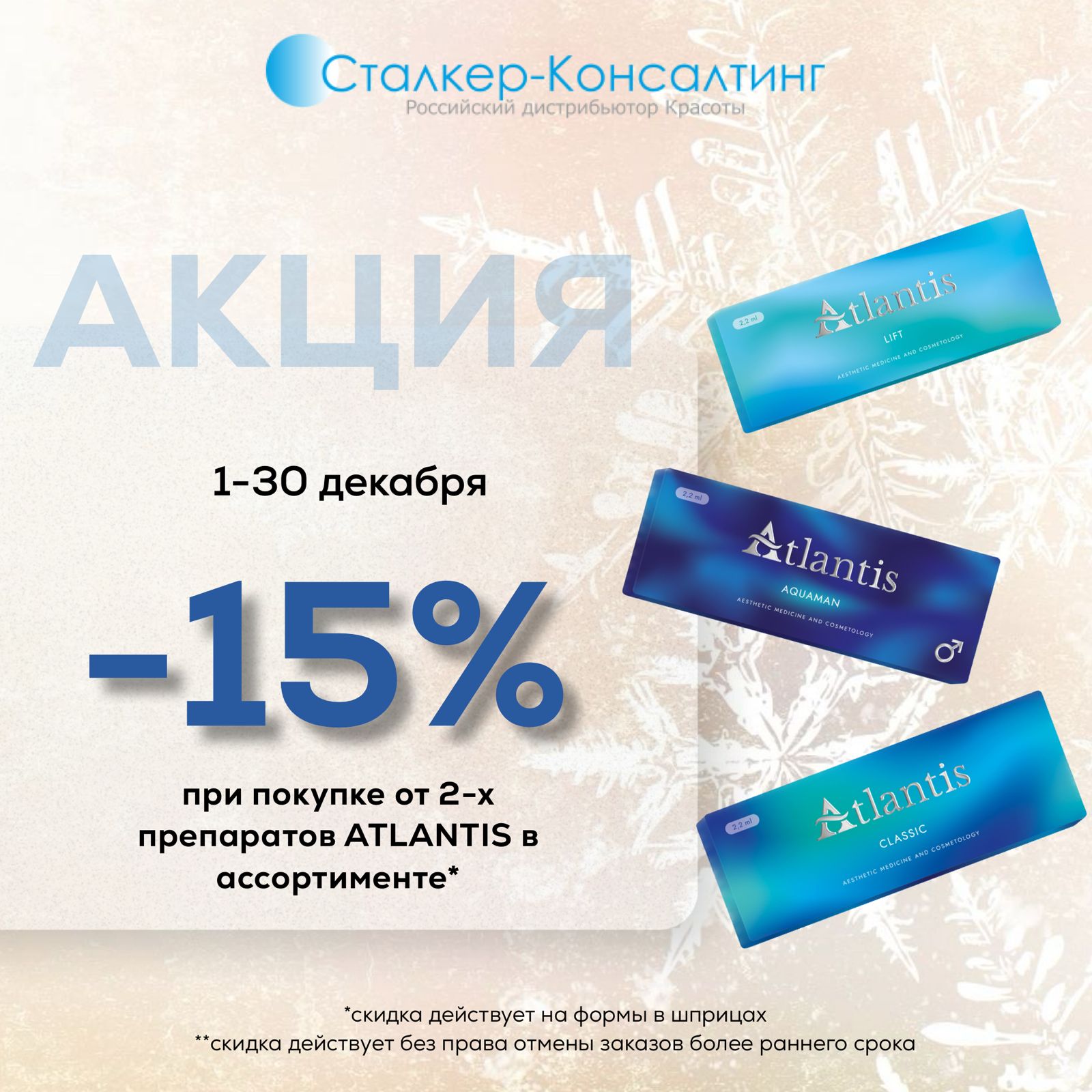 В декабре для вас действует скидка 15% при покупке от 2-х препаратов ATLANTIS в ассортименте