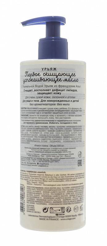 Первое очищающее успокаивающее масло мягко очищает, увлажняет и защищает кожу. Уменьшает ощущение зуда, стянутости и дискомфорта.
