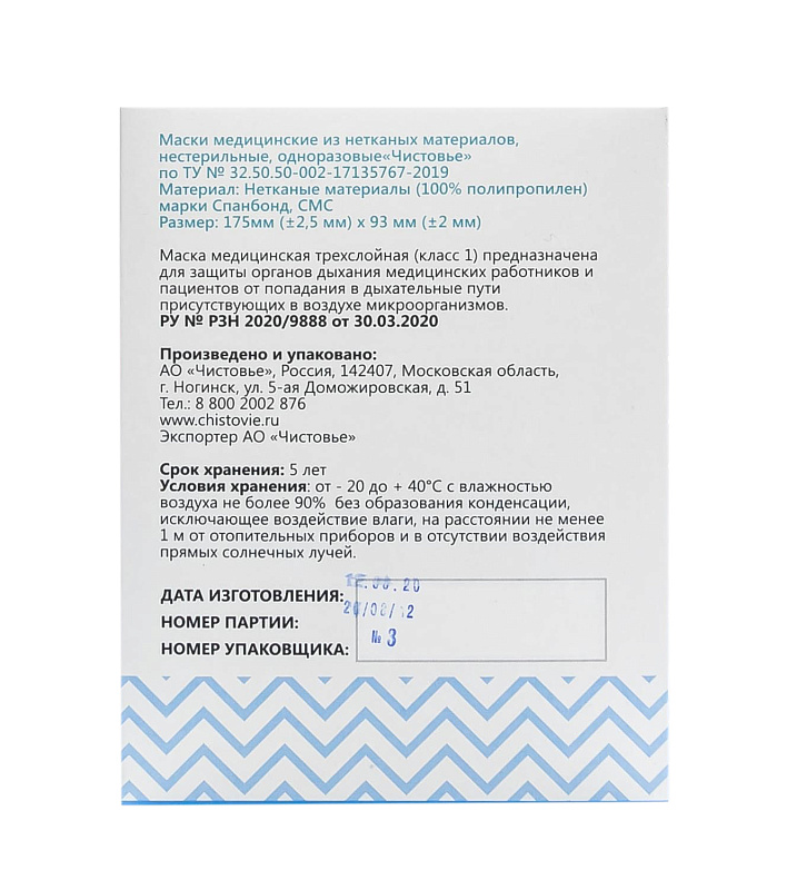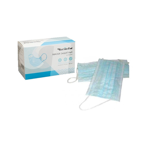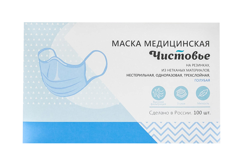 Маска медицинская из нетканых материалов нестерильная одноразовая голубая 1 х 100 шт