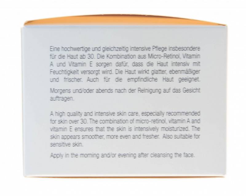 Изысканный крем необычайно нежной текстуры с тонким ароматом ванили предназначен для домашнего ухода за кожей лица после 30 лет. Входящий в состав ретинол заключен в микрокапсулы, что обеспечивает его высвобождение на необходимом уровне кожи с целью оптимального воздействия. Крем подходит для любого типа зрелой кожи, в том числе для жирной и склонной к акне. Препарат оказывает комплексное воздействие, увлажняя и насыщая кожу необходимыми витаминами и микроэлементами. Уже после первого применения кожа выглядит более упругой и гладкой, а курсовой уход обеспечивает осветление пигментных пятен, разглаживание морщин и нормализацию работы сальных желез.
