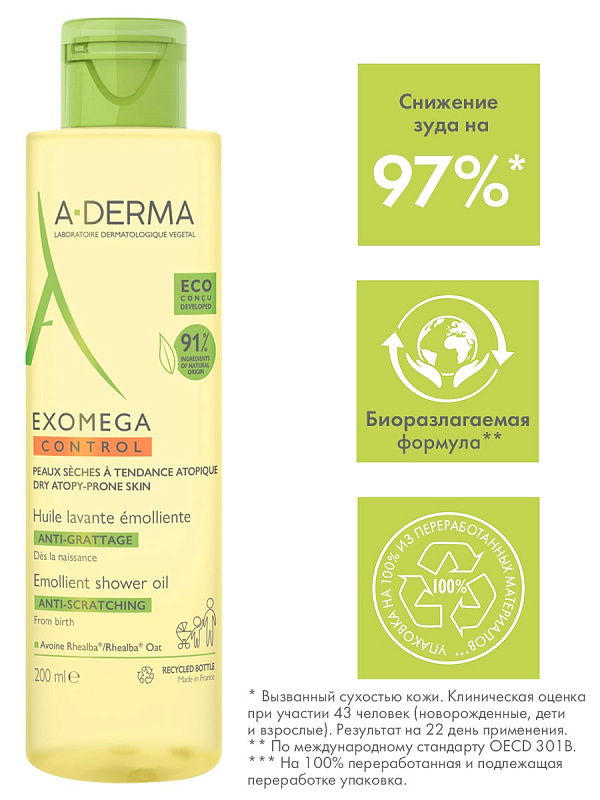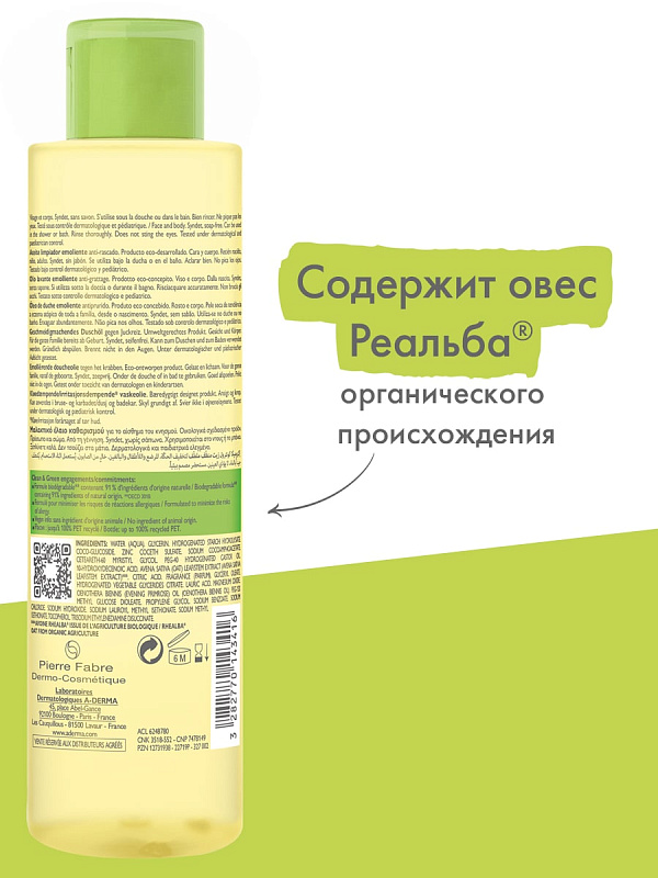 Мягко очищает атопичную и очень сухую кожу, склонную к зуду