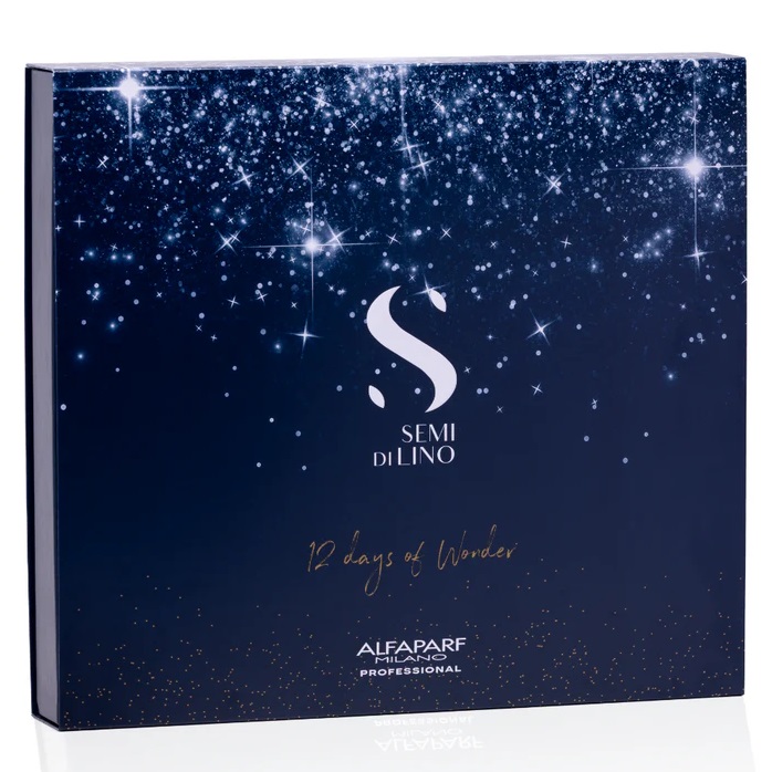 Адвент-календарь Alfaparf Milano Semi Di Lino «12 дней чудес» 2025 года — это увлекательное путешествие, наполненное 12 сокровищами для ухода за волосами в мини формате. За каждой дверцей — средство, разработанное для питания, защиты и улучшения естественной красоты волос.