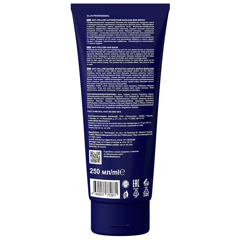 Антижелтый бальзам для волос Anti-Yellow Balm, 250 мл