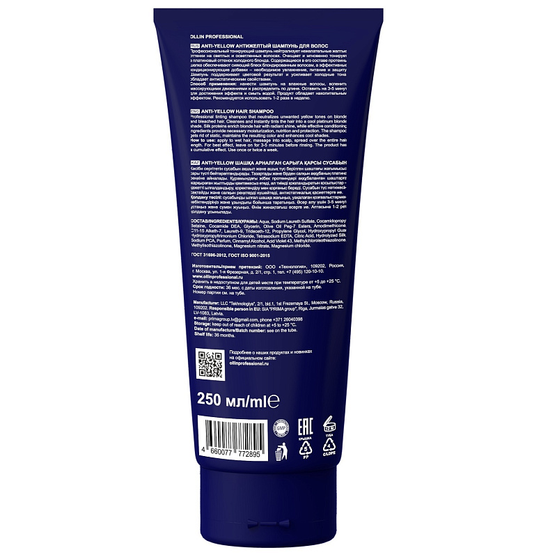 Антижелтый шампунь для волос Anti-Yellow Shampoo, 250 мл