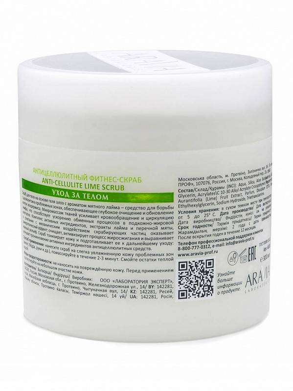 Скраб для тела на основе геля алоэ с ароматом мятного лайма – средство для борьбы с целлюлитом в проблемных зонах, обеспечивающее глубокое очищение и обновление клеток эпидермиса.