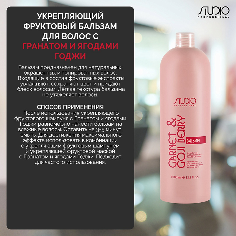 Укрепляющий фруктовый бальзам для волос с гранатом и ягодами годжи, 1000 мл