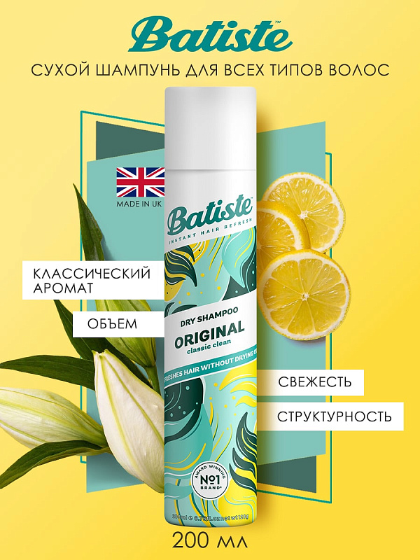 Сухой шампунь для волос Original с классическим ароматом, 200 мл