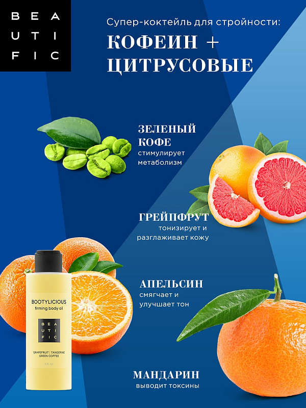 Масло для тела Bootylicious с эссенцией грейпфрута и зеленым кофе, 150 мл