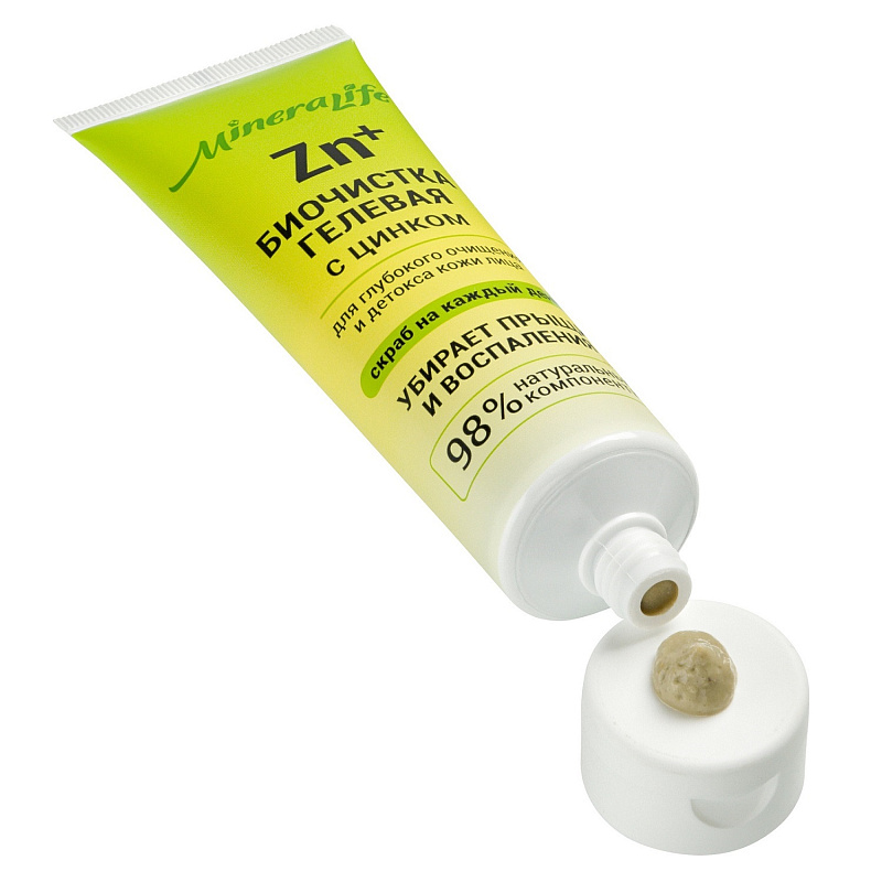 Гелевая биочистка с цинком для кожи лица, шеи и декольте, 80 мл