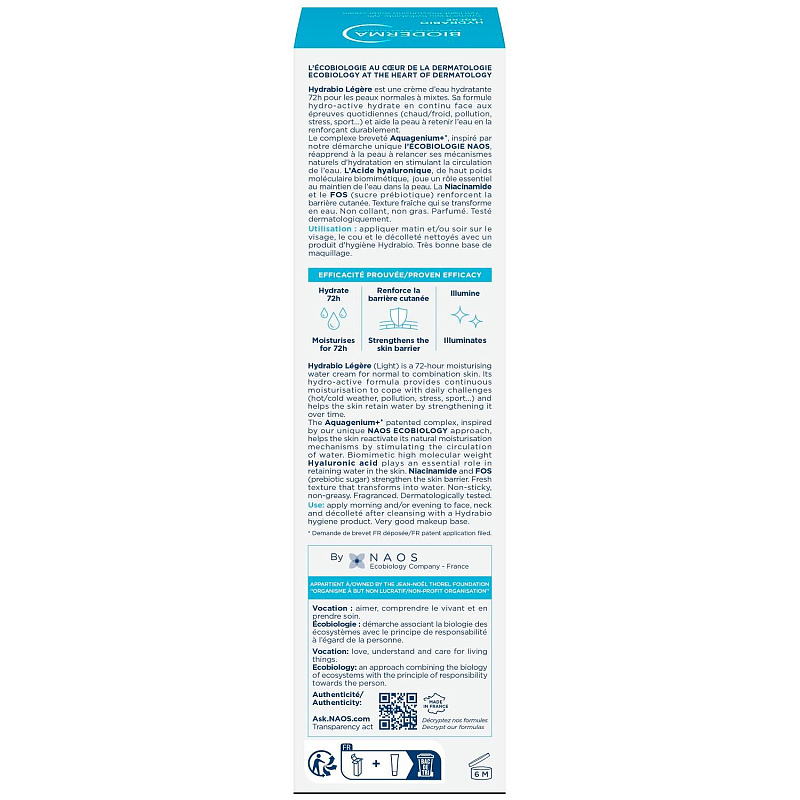 Легкий увлажняющий крем для нормальной и комбинированной кожи Hydrabio, 40 мл