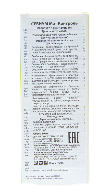 Матирующий крем для жирной кожи Sebium Mat Control, 30 млПричина уценки: