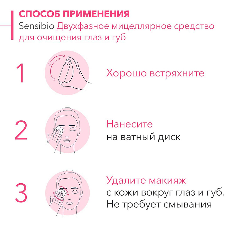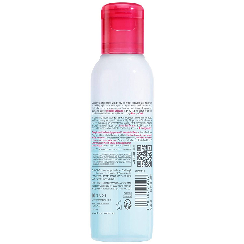 Двухфазное мицеллярное средство для очищения глаз и губ Sensibio H2O, 125 мл