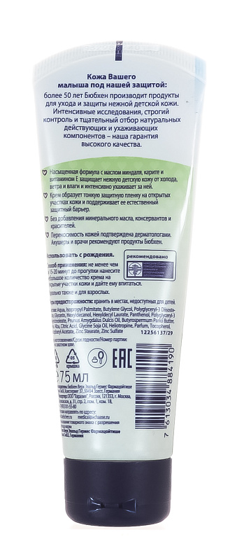 Насыщенная формула крема защищает нежную детскую кожу от холода, ветра, влаги и интенсивно ухаживает за ней. Крем образует тонкую воздухопроницаемую пленку на открытых участках тела и поддерживает ее естественный защитный барьер.