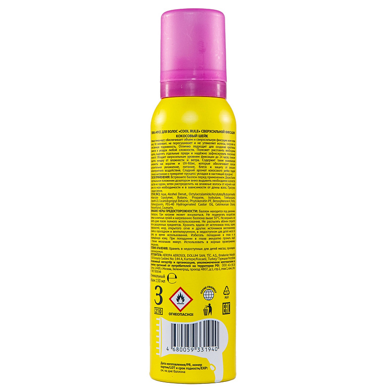 Пенка-мусс сверхсильной фиксации "Кокосовый шейк" для всех типов волос, 150 млПричина уценки: