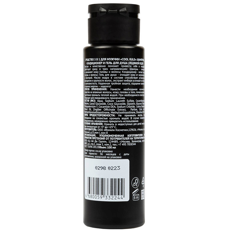 Средство 3 в 1 для мужчин "Ледяной кедр": шампунь, кондиционер и гель для душа, 100 мл