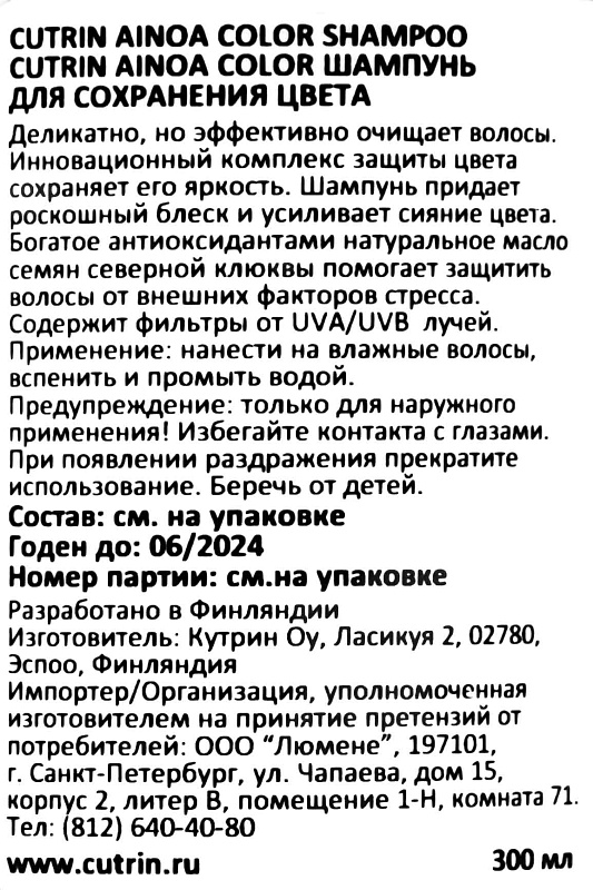 Масло северной клюквы – ценнейший источник омега-3 полиненасыщенных кислот и антиоксидантов, который позволяет превратить травмированные окрашиванием пряди в жидкий струящийся шелк, быстро убрать все структурные разрывы, избавить от сухости и сечения кончики, насытить максимальным количеством питательных веществ и влаги, сделать волосы потрясающе красивыми, гладкими и эластичными.