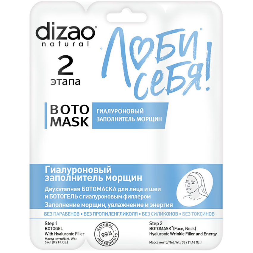 Двухэтапная ботомаска для лица, шеи и век с гиалуроновым заполнителем морщин, 1 шт
