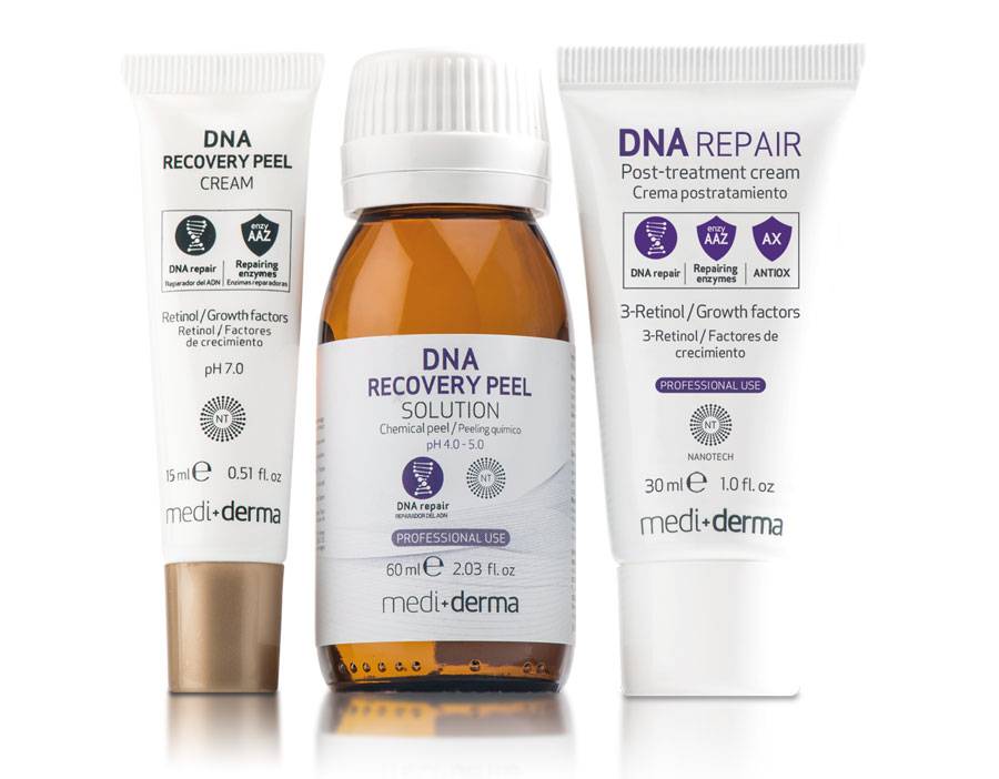После очищения и защиты чувствительных участков кожи соответствующим средством, нанести массирующими движениями 1 или 2 слоя раствора DNA recovery peel solution, пока не сформируется светло-белая маска. Между слоями сделать паузу от 3 до 5 минут. Не смывать. Запечатать процедуру 1-2 слоями крема DNA recovery peel и оставить действовать на 8-10 часов. После этого хорошо смыть водой.