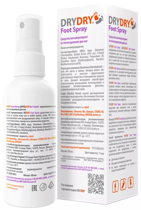 Средство против потливости ног, обладающее охлаждающим и освежающим эффектом. Имеет пролонгированное антимикробное действие. Устраняет неприятный запах. Не нарушает функции потовых желез. Безопасно и нетоксично. Универсально. Подходит как женщинам, так и мужчинам.