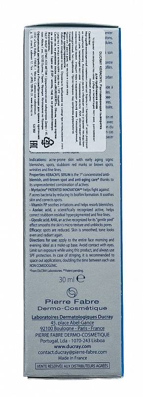 Ducray Keracnyl Serum (Дюкрэ Керакнил Сыворотка разглаживающая) для жирной, комбинированной, проблемной кожи. Инновационная разглаживающая сыворотка Дюкрэ Керакнил - идеальный ежедневный уход для проблемной кожи, склонной к акне и воспалению. Средство видимо улучшает внешний вид кожи, борется с патогенной микрофлорой, выравнивает цвет лица и замедляет образование морщин.