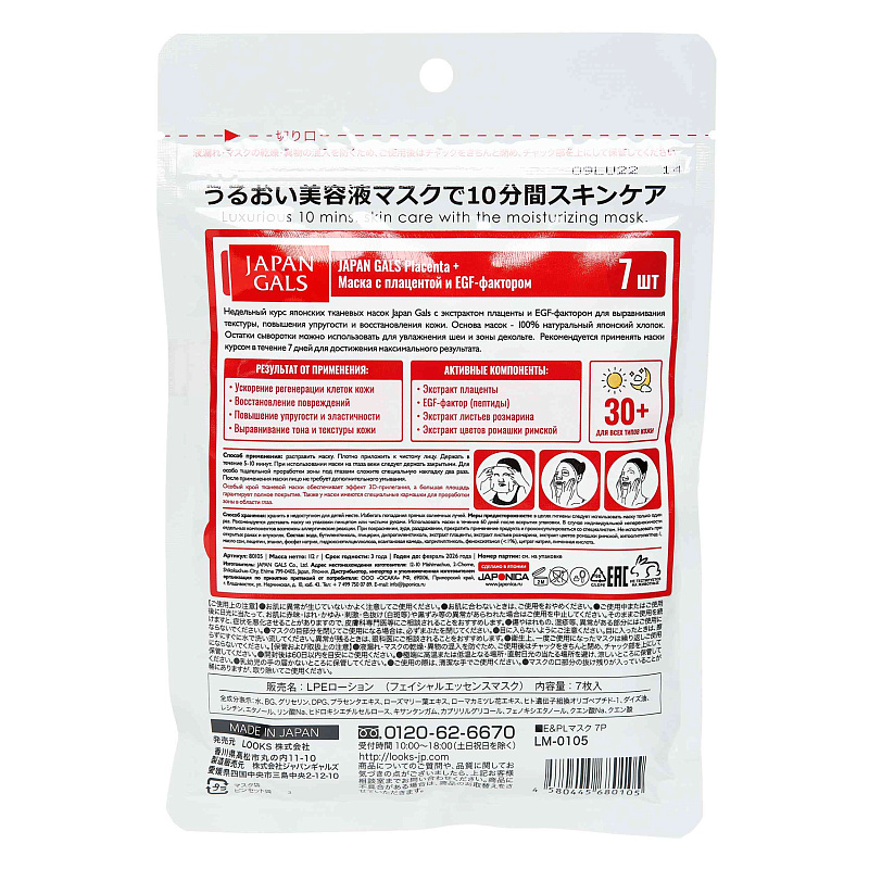Маска с плацентой и EGF фактором Facial Essence Mask, 7 шт