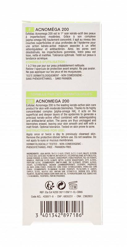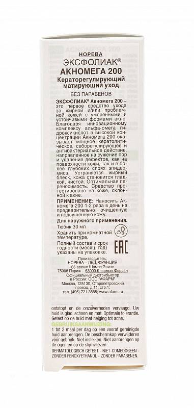 Крем для жирной, комбинированной кожи с акне средней степени тяжести Эксфолиак Акномега 200 30 мл