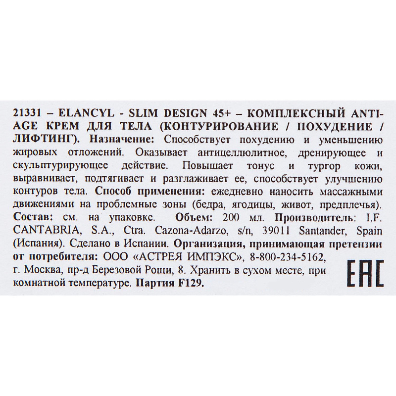 Комплексный крем для тела Slim Design 45+, 200 мл