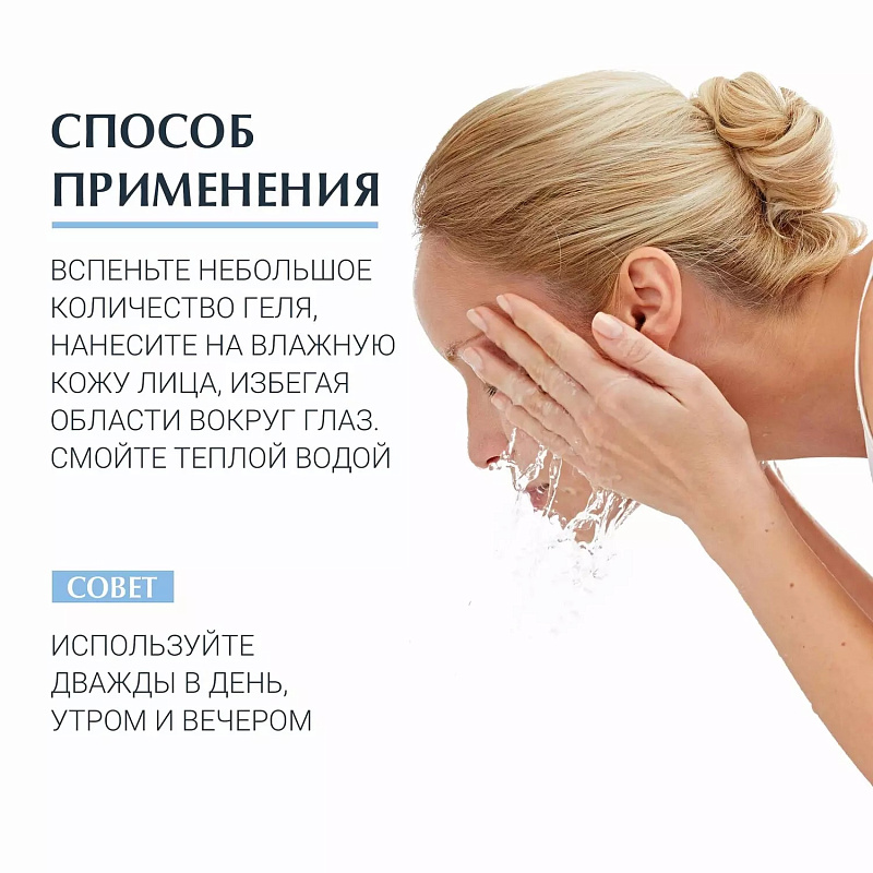 Наносите на влажную кожу лица массирующими движениями, вспеньте средство, а затем смойте водой. Используйте утром и вечером
