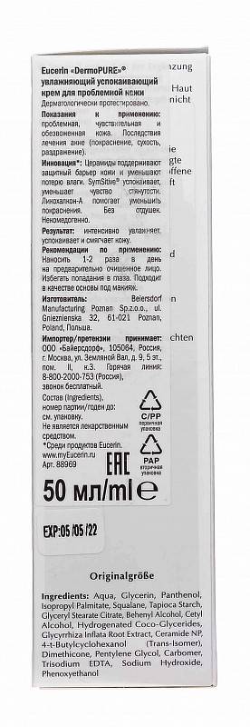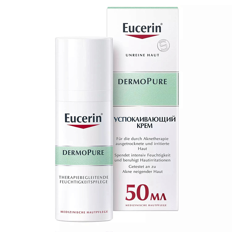 Eucerin DERMOPURE успокаивающий, увлажняющий крем для проблемной кожи — увлажняющий крем для склонной к появлению акне кожи, специально разработанный для людей, проходящих лечение от акне.