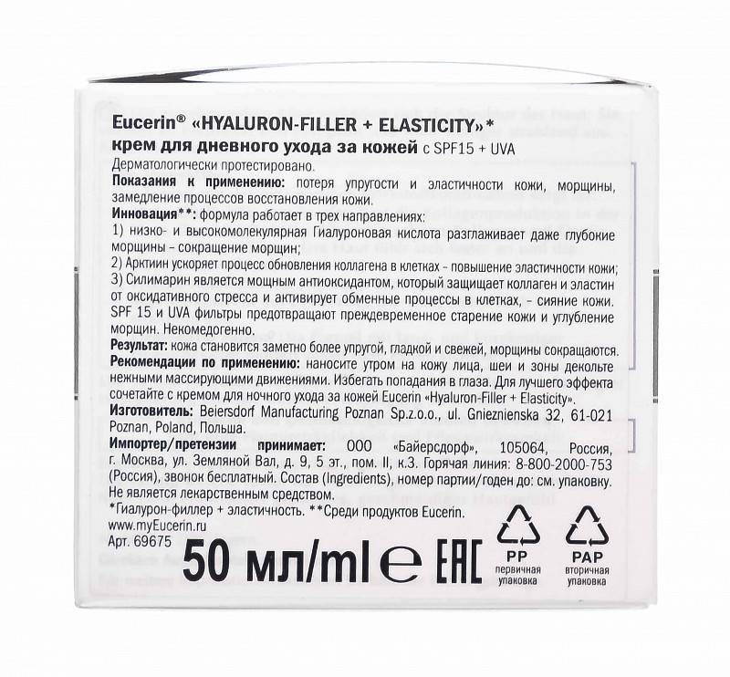 Крем для дневного ухода за кожей HYALURON-FILLER + ELASTICITY SPF 15+UVA, который разглаживает глубокие морщины и улучшает эластичность кожи.