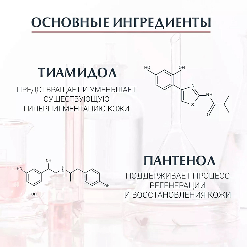 Eucerin Anti-Pigment Ночной антипигментный крем содержит тиамидол, эффективный запатентованный ингредиент, который действует на причину гиперпигментации, уменьшая выработку меланина. Клинически и дерматологически доказано, что тиамидол уменьшает темные пятна и предотвращает их повторное появление. Первый результат заметен уже через две недели, а при постоянном использовании можно добиться стойкого эффекта.