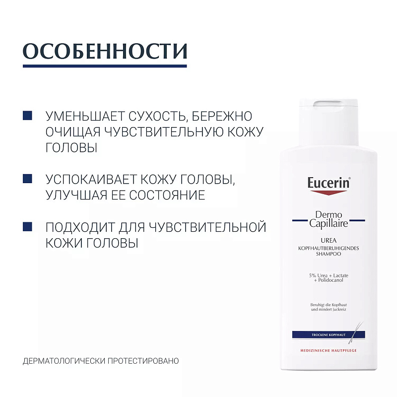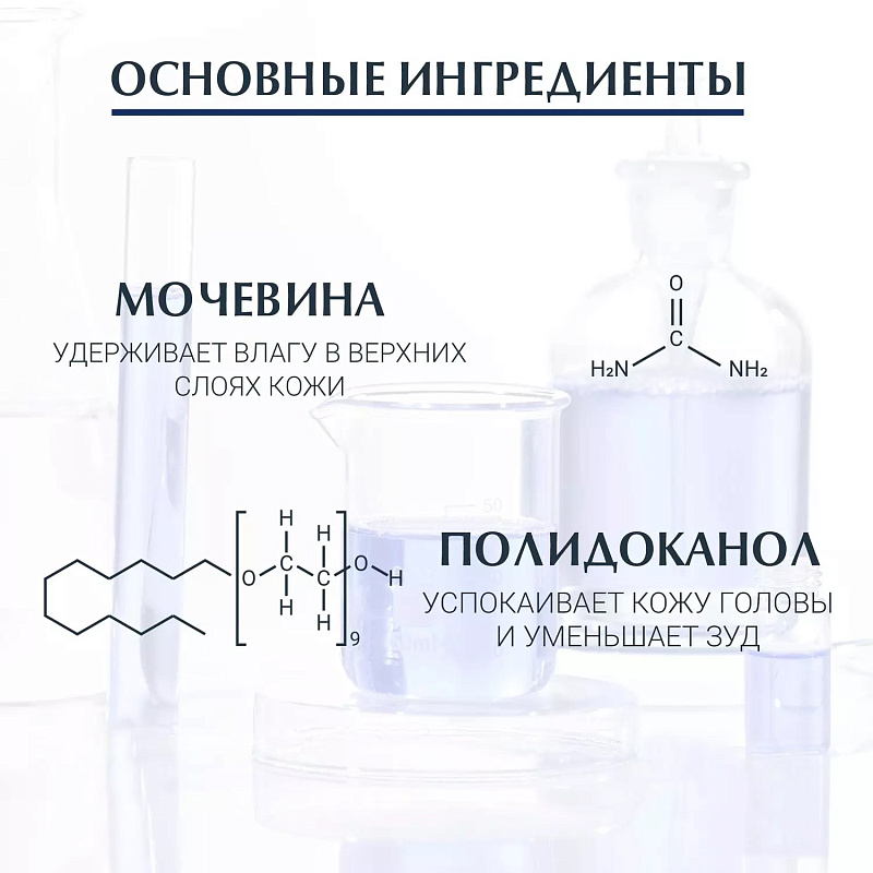 2) Полидоканол, который уменьшает зуд. Он обогащен мочевиной и лактатом - двумя натуральными увлажняющими факторами, которые вырабатывает здоровая кожа, для питания и ухода, необходимого сухой зудящей коже головы.