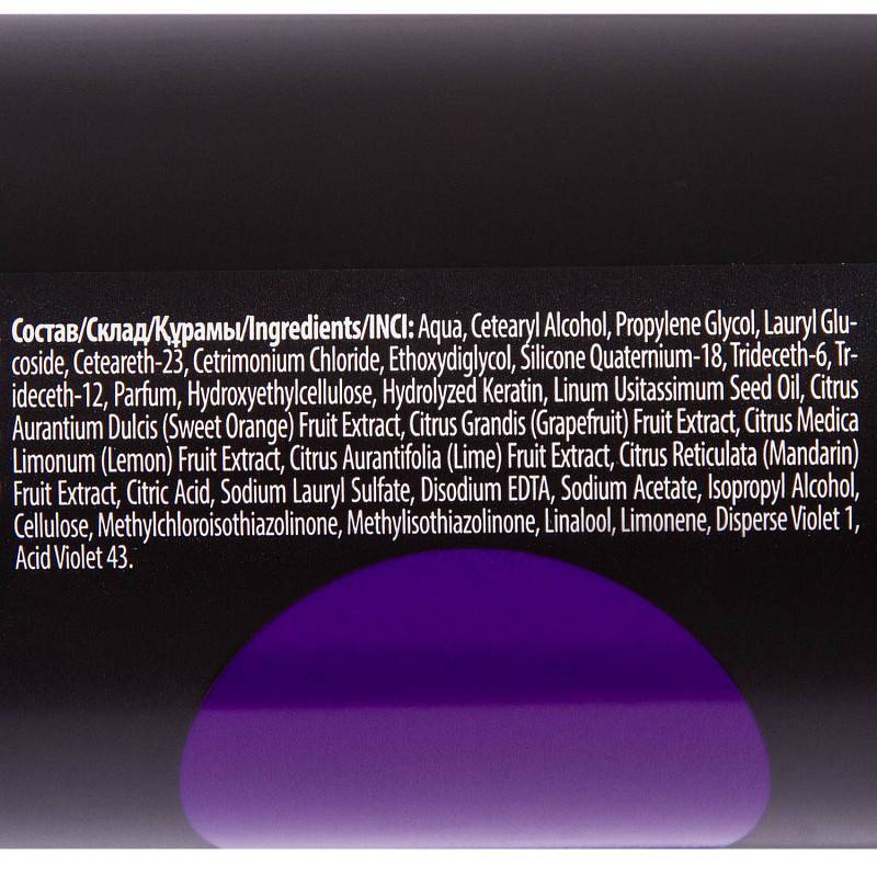 Входящие в состав средства кератиновый комплекс и льняное масло питают и восстанавливают поврежденные участки волос, а комплекс цитрусовых экстрактов Uniplant Citric защищает цвет и придает волосам ослепительный блеск.