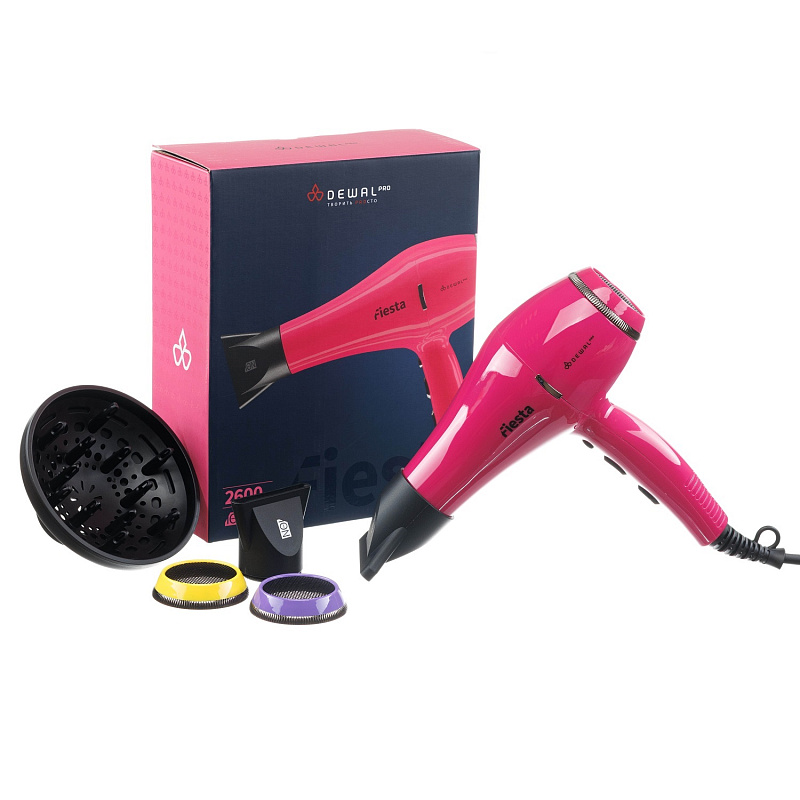 Фен для волос Fiesta с ионизацией, фуксия, 3 насадки, 2600 Вт